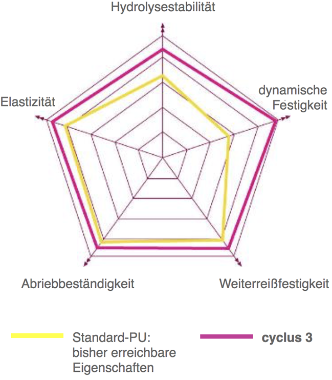 Erst durch den Einsatz eines neuartigen Polyurethanmaterials und den besonderen Bezugsaufbau wurde es möglich, Bohr- und Rilltiefen von Press- und Saugpresswalzenbezügen deutlich zu erhöhen, ohne dass dabei die Stabilität der Bezugsoberfläche beeinträchtigt wird. Schließlich haben wir unser ganzes Know-how in die Kombination bestehender und die Weiterentwicklung neuer Materialkomponenten gesteckt. Das Ergebnis: Das cyclus 3-Polyurethan hat eine noch nie erreichte mechanische, dynamische und chemische Stabilität. Die Verarbeitung auf modernsten Fertigungsanlagen mit perfekter Kontrolle der Prozessparameter ermöglicht Reproduzierbarkeit und hohe Verlässlichkeit. Und das zahlt sich langfristig aus – mit weniger Stegausbrüchen, gleichmäßigen Entwässerungsprofilen, geringer Abnutzung durch Abrieb und mit einer um bis zu 30% längeren Laufzeit im Vergleich zu üblichen Polyurethanmaterialien.