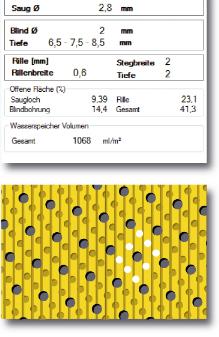Optimierte Verteilung der Blindbohrung: effizientere Entwässerungswege bei gleichzeitig erhöhtem Wasserspeichervolumen.